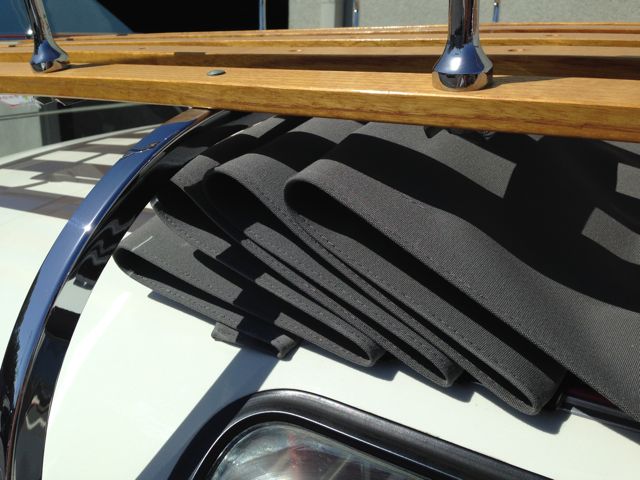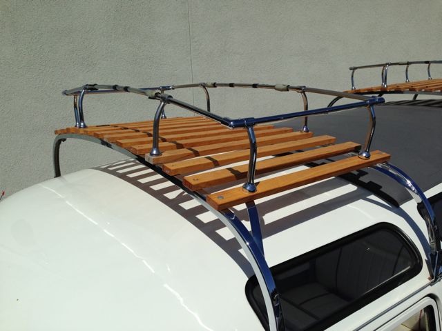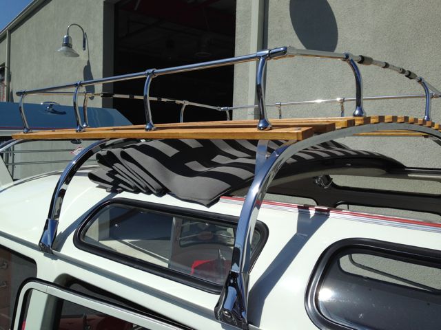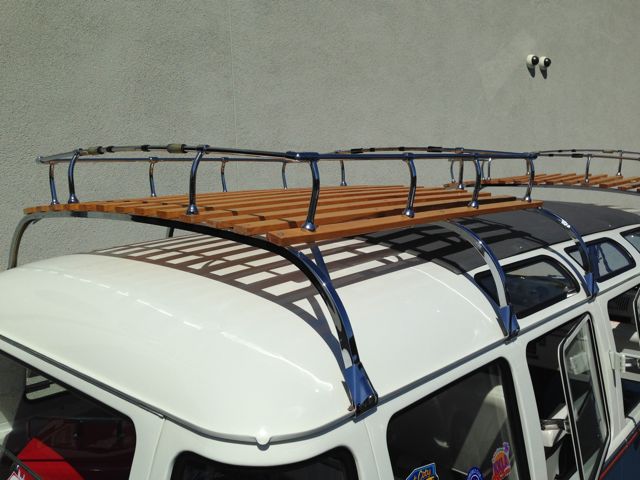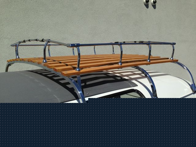The wood slat roof racks have fully chromed hardware and clamps.