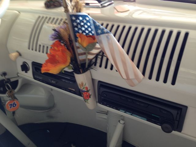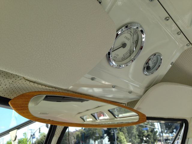 Custom wood look surfboard mirror, the tachometer and amps gauge mounted