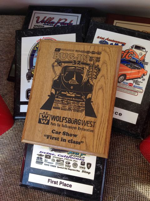 A pile of awards from the top California events such as the Bug In and VW