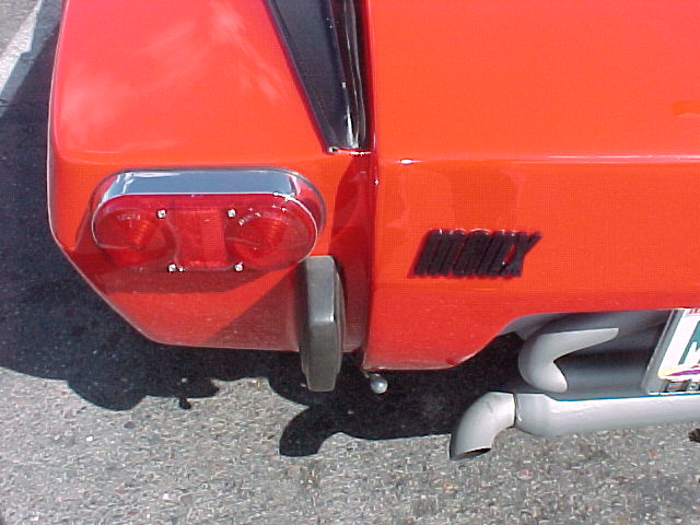 Detail of the taillight, rear emblem and bumperettes.